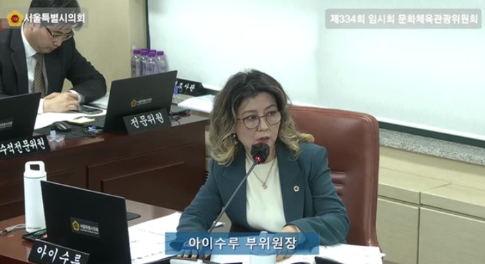[코리아 이슈저널=최성일 기자] 서울특별시의회 문화체육관광위원회 아이수루 부위원장(더불어민주당·비례)이 6일 열린 제334회 임시회 문화체육관광위원회 관광체육국 소관 업무보고에서, 전문체육시설 건립에 있어 서남권 일대 위치한 상대적으로 소외된 금천구의 장애인 체육시설 건립을 제안하고, 장애인의 문화체육활동 활성화를 위한 정책을 수립해줄 것을 촉구했다.