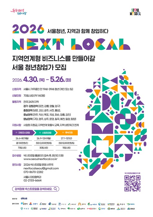 곽종빈 서울시 행정국장은 “올해로 8년차를 맞은 '넥스트로컬'은 회차를 거듭할수록 지자체의 관심과 참여가 확대되는 대표적인 지역연계 창업 프로그램으로 자리매김하고 있다”며 “각 지자체와 긴밀한 협력체계를 바탕으로 청년들이 지속가능한 로컬 창업가로 성장할 수 있도록 적극 지원해 나가겠다”고 밝혔다.