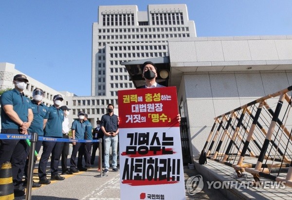 국민의힘은 지난 2월 8일부터 김 원장이 사법부의 중립성을 훼손했다며 국회 기자회견, 릴레이 시위 등을 통해 사퇴를 압박해왔다.