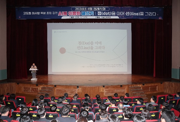 이어 진행된 특강에서는 “경상북도 K-과학자”로 위촉된 아침편지문화재단 고도원 이사장을 초청해 'AI를 이용한 글쓰기: 점(dot)을 이어 선(line)을 그리다.'라는 주제로 강연이 진행됐다. 이번 강연은 AI 기반 글쓰기와 스토리텔링 기법을 통해 문서의 가독성과 소통력을 높이고, 공직자의 실무 역량을 높이기 위해 마련됐다.
