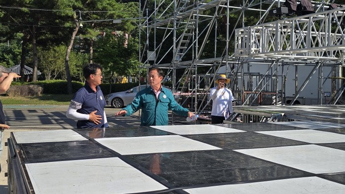 이날 신영재 군수는 7월 30일 전야제에 앞서 개최 장소인 꽃뫼공원과 도시 산림 공원 토리숲에서 관계자와 함께 공연장 무대 시설, 전기·소방 시설, 먹거리 부스 등 축제장 안전 점검을 진행했다.