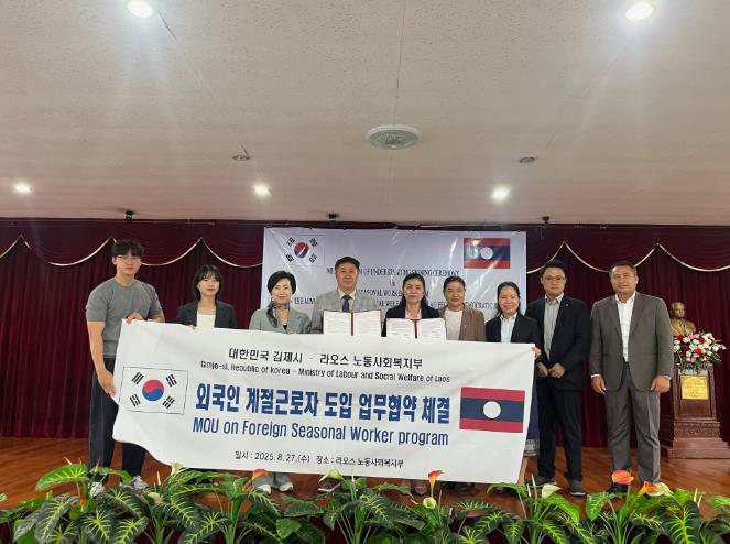 [코리아 이슈저널=김종오 기자] 김제시는 농촌 지역의 인력난 해소와 안정적인 농업 인력 수급 기반 마련을 위해 지난 26일부터 30일까지 라오스 노동사회복지부와 캄보디아 노동직업훈련부를 방문해 외국인 계절근로자 도입 업무협약(MOU)을 체결했다고 밝혔다.
