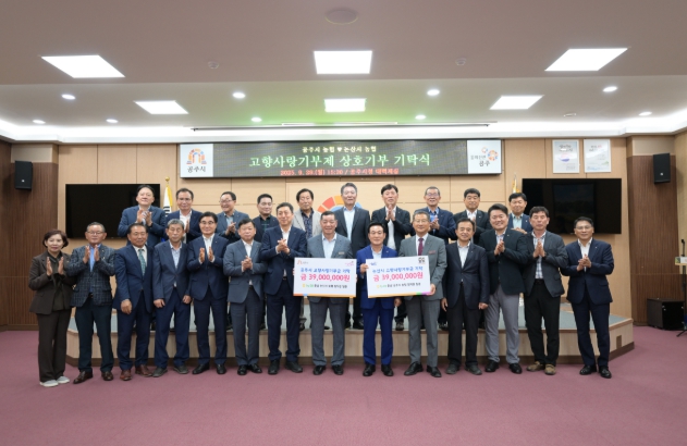 [코리아 이슈저널=홍종수 기자] 논산시는 29일 공주시청 대백제실에서 공주시 및 양 시 농협 관계자들과 함께 ‘고향사랑기부금 상호 기탁식’을 개최했다고 밝혔다.