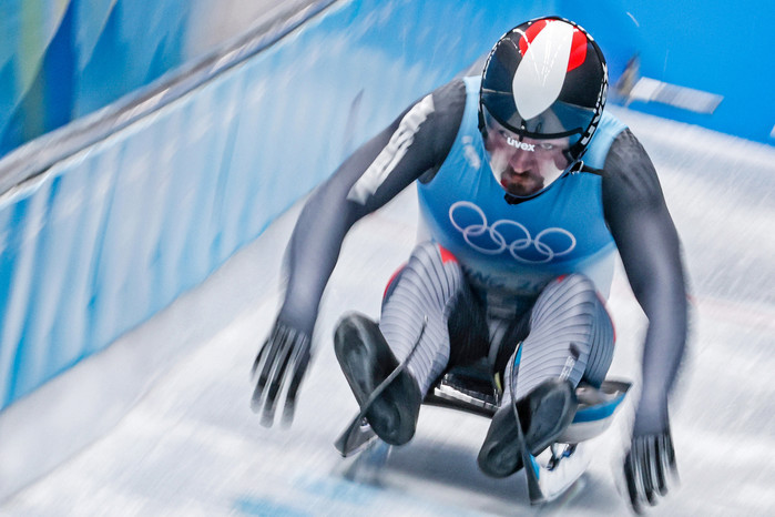 [열린의정뉴스 = 김윤영 기자] 6일 베이징 옌칭의 국립 슬라이딩 센터에서 열린 2022 베이징동계올림픽 남자 루지 싱글 3차 레이스에서 오스트리아 선수가 트랙을 질주하고 있다. 2022.2.6