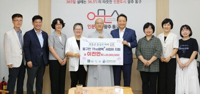 [코리아 이슈저널=김종오 기자] 광주 동구는 무등산 증심사로부터 지역사회 취약계층과 주민복지 향상 사업 추진을 위한 후원금 2천만 원을 기탁받았다고 밝혔다.