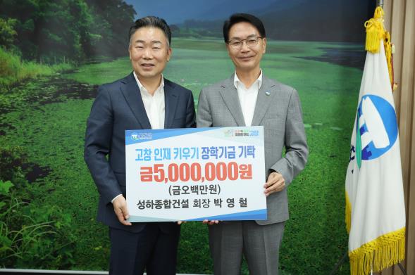 ▲ 고창군 인재육성 장학금 기탁-성하종합건설 박영철 회장