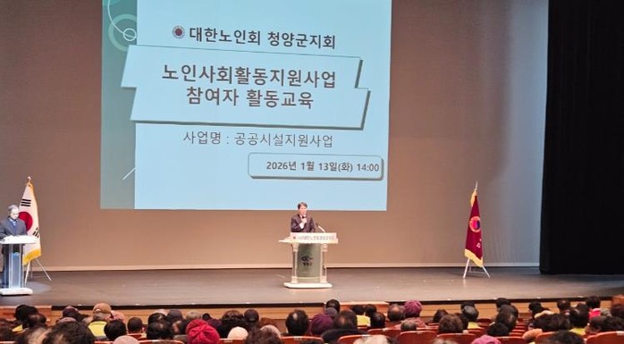 [코리아 이슈저널=홍종수 기자] (사)대한노인회 청양군지회가 지난 13일 문화예술회관에서 공공시설지원사업 참여자 550명을 대상으로 노인일자리사업 참여자 교육을 실시했다고 밝혔다.