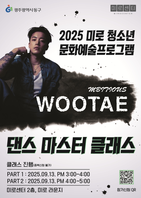[코리아 이슈저널=김종오 기자] 광주 동구는 오는 9월 13일 미로센터 2층 미로 라운지에서 열리는 2025 미로 청소년 문화예술프로그램 ‘댄스 마스터 클래스’에 참여할 청소년을 18일부터 모집한다고 밝혔다.