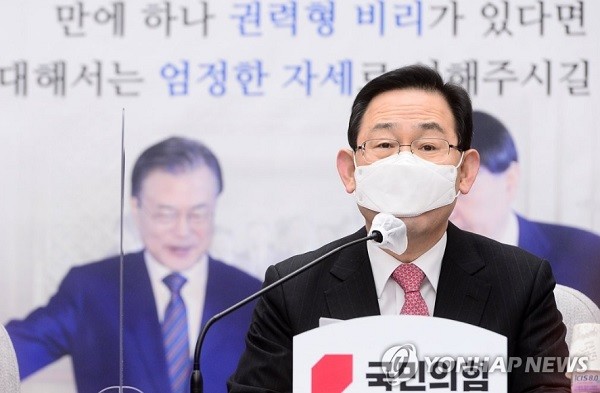 이어 주 원내대표는 "민주당은 추미애 장관 수준의 심복을 공수처장에 앉혀서 울산선거 부정개입 사건, 월성원전 1호기 경제성 조작사건, 라임·옵티머스 금융비리사건 같은 권력형 비리 사건을 모두 공수처장 캐비닛에 처박아두겠다는 것"이라고 지적했다.