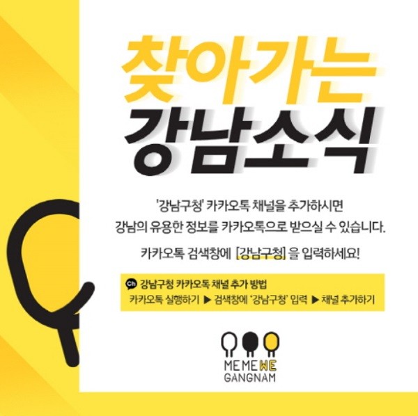 구는 앞으로 카카오톡을 비롯한 다양한 SNS 채널을 통해 구청 관련 행사와 각종 축제·공연·전시 등 정보는 물론, 민원 접수·처리 결과 확인, 관내 코로나19 현황 및 확진자 이동 경로, 강남라이프 웹진, 다양한 콘텐츠가 담긴 구청 홈페이지 연결 서비스 등을 제공할 방침이다.