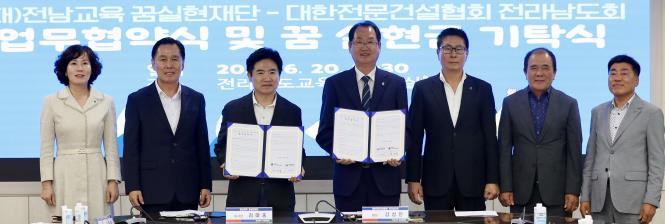 [코리아 이슈저널=김종오 기자] (재)전남교육 꿈실현재단과 대한전문건설협회 전라남도회는 20일 전라남도교육청 5층 상황실에서 전남 지역 기술 인재 육성을 위한 업무협약을 체결했다.