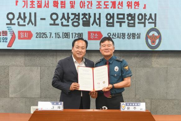 오산시와 오산경찰서는 지난 15일 시청 상황실에서 ‘야간 조도 개선 업무협약’을 체결하고, 어두운 골목길과 범죄 취약지역의 조도를 집중 개선해 범죄를 예방하고 시민 불안을 해소하기로 했다.
