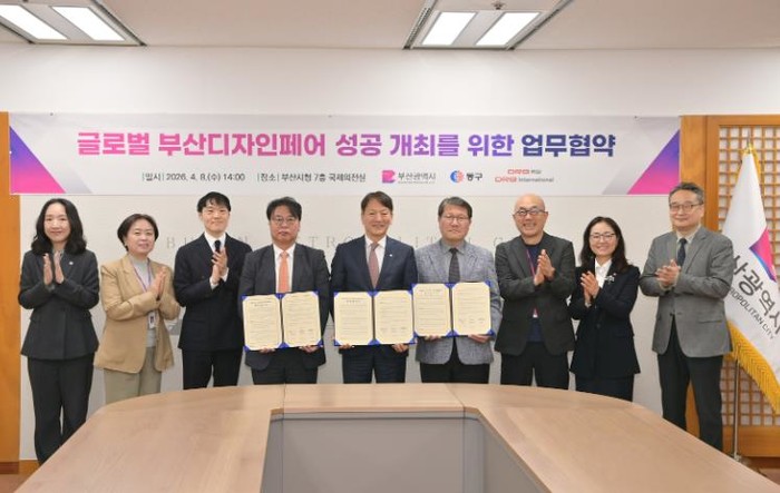 [코리아 이슈저널=김태훈 기자] 부산광역시 동구는 4월 8일 부산시청 국제의전실에서 부산광역시, 주식회사 디알비동일과 함께 ‘글로벌 부산디자인페어’ 추진을 위한 업무협약(MOU)을 체결했다고 밝혔다.