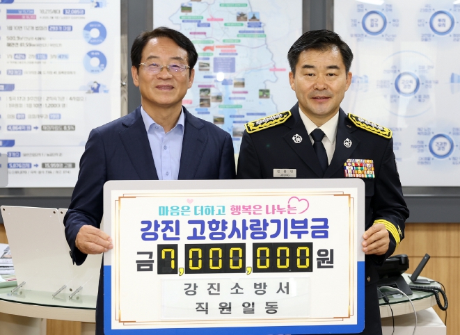[코리아 이슈저널=김종오 기자] 강진소방서가 강진군에 고향사랑기부금 7백만원을 기탁했다.