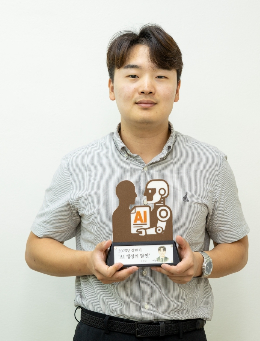 | ▲ 맹준엽 주무관이 ‘AI 행정의 달인’으로 모범공무원에 선정돼 상패를 들고 있는 모습 |