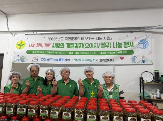 행사에는 남동구 새마을회 소속 지도자 70여 명이 참여해 열무김치와 오이지 등 계절 김치를 담가 홀몸 어르신 등 취약계층 425가구에 전달했다.