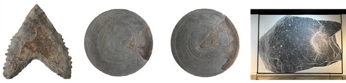 | ▲ 거제 대포패총 작살촉, 가야의 문양뚜껑토기, 하동 대곡리의 암혈바위 |