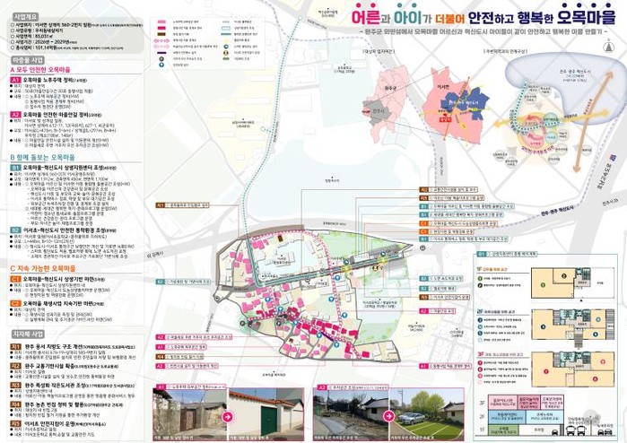 지난 4월 완주군은 ‘어른과 아이가 더불어 안전하고 행복한 오목마을’이라는 슬로건으로 공모사업을 신청했으며, 사전 컨설팅과 현장 평가, 발표평가 등 엄격한 심사를 거쳐 최종 선정되는 성과를 거뒀다