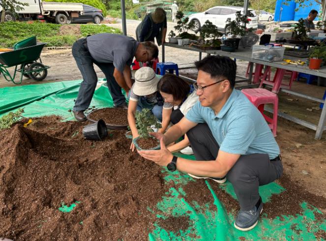 | ▲ 함평군 국화동호회, 국화 분재 준비 사진 |