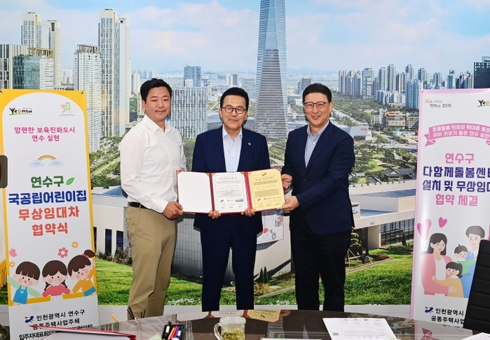 [코리아 이슈저널=홍춘표 기자] 연수구는 지난 25일 연수구 제2청사에서 신규 준공 예정인 공동주택 사업 주체와 국공립어린이집 무상임대차 협약을 체결했다.