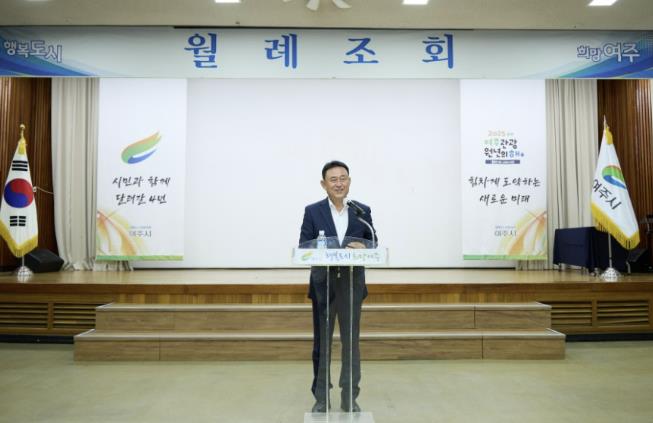 [코리아 이슈저널=홍춘표 기자] 여주시는 8월 1일 9시부터 시청 대회의실에서 130여 명의 공직자가 참석한 가운데 8월 월례조회를 개최했다.