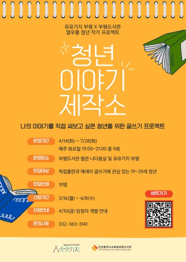 프로그램은 4월 14일부터 6월 9일까지 매주 화요일 총 8회차로 부평도서관에서 진행되며, 7월 28일에는 유유기지 부평 내 유유스페이스에서 약 2시간의 회고 모임이 열릴 예정이다.