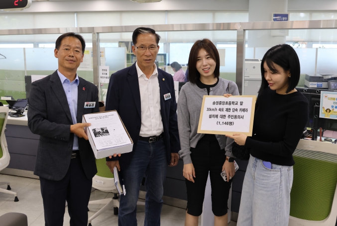 광산구의회 국강현 의원·진보당 광산갑지역위원회·송정중앙초 학부모회, 과속단속카메라 설치 촉구 서명 광주시·광산경찰서에 제출