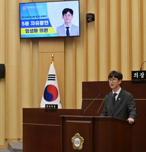 [코리아 이슈저널=홍춘표 기자] 광주 서구의회 임성화 의원이 24일 제334회 임시회 제3차 본회의에서 ‘5분 자유발언’을 통해 '4계절 쾌적한 착한 보행환경 조성을 위한 종합적인 방안'을 제안하며 적극적인 개선을 촉구했다.