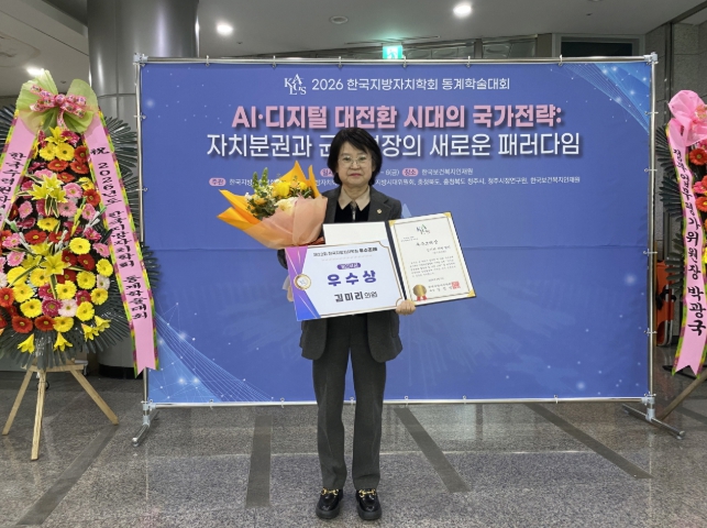 [코리아 이슈저널=홍춘표 기자] 경기도의회 김미리 의원(개혁신당, 남양주2)이 대표발의한 '경기도 김장문화 활성화 및 지원 조례'가 지난 5일 ‘제22회 한국지방자치학회 우수조례 시상식’에서 개인부문 우수상을 수상하는 영예를 안았다.