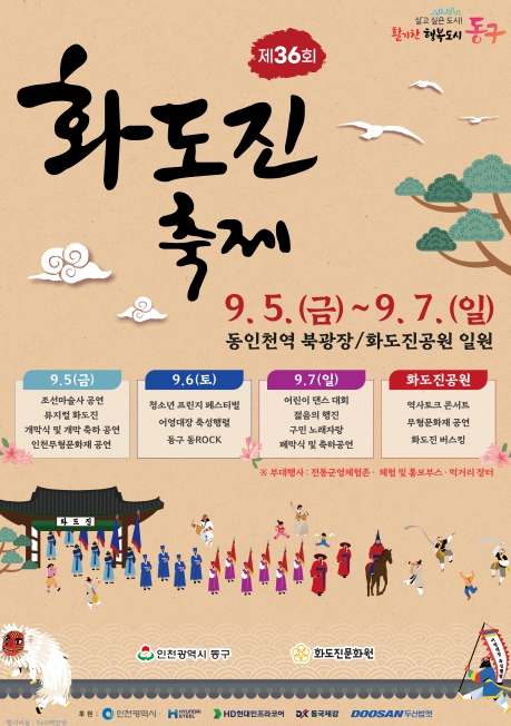 [코리아 이슈저널=홍춘표 기자] 인천 동구는 9월 5일~7일까지 3일간 동인천역 북광장 특설무대와 화도진공원 일원에서 ‘제36회 화도진축제’를 개최한다고 밝혔다.