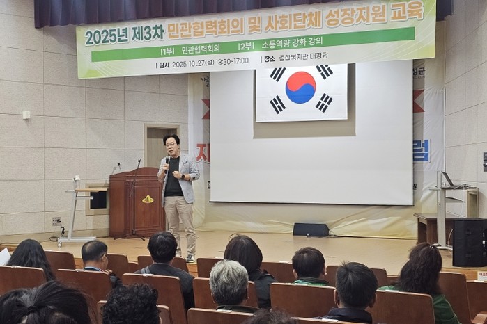 [코리아 이슈저널=김태훈 기자] 의성군은 10월 27일 종합복지관 대강당에서 관내 사회단체 임원 및 실무자 등 70여 명이 참석한 가운데 ‘2025년 제3차 민관협력회의 및 성장지원교육’을 개최했다고 밝혔다.