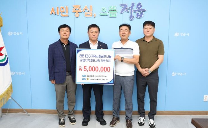 이학수 시장은 “꾸준히 나눔을 실천해 주신 대한한돈협회 정읍시지부에 깊이 감사드린다”며 “기탁해 주신 장학금은 정읍의 인재들에게 소중히 사용하겠다”고 밝혔다.