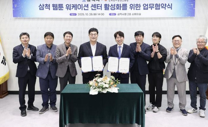 [코리아 이슈저널=최제구 기자] 삼척시는 10월 28일 ‘삼척 웹툰 워케이션 센터’ 활성화를 위해 한국만화영상진흥원과 업무협약을 체결했다.