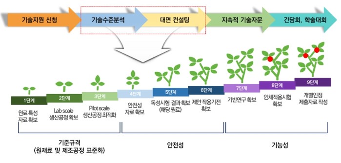 특히 올해는 건강기능식품 기능성 원료 스마트 제품화 지원 연구 수행기관인 한국국제생명과학회(ILSI Korea)와 함께 건강기능식품 기능성 원료 개발 과정에서 발생할 수 있는 시행착오를 줄일 수 있도록 기능성분 설정, 안전성·기능성 입증 방향 등에 대한 현장 기술 상담을 실시한다.