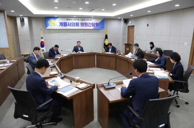 이번 간담회에서는 집행부 안건 계룡시 어린이보호구역 개선공사 성립전 예산 편성, 소상공인 특례보증 지원사업 출연금 지원 동의안 등 현안 설명 9건과 계룡시 농업작업안전재해 예방 및 지원에 관한 조례안, 계룡시 도시계획 조례 일부개정조례안 등 조례 제·개정안 7건, 그리고 의회 소관 사항, 계룡시 안전보안관 운영 조례안(이용권 의원 대표발의), 계룡시 어르신 생활디지털 교육 지원에 관한 조례안(이청환 의원 대표발의) 등 5건을 포함한 총 21건에 대하여 부서장으로부터 추진상황을 보고받고 지역사회에 미칠 영향과 발전 방안에 대해 다양한 의견을 나누었다.
