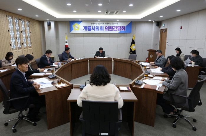 이번 간담회에서는 집행부 안건으로 ▴2025년도 간주예산(1·2차) 편성 보고 ▴장기요양 재택의료센터 시범사업 추진계획 보고 ▴시립드림지역아동센터 민간위탁 동의안 등 6건과 ▴계룡시 지역보건의료서비스 업무대행에 관한 조례안 등 조례 제정 2건, 그리고 의회 소관 안건 4건을 포함한 총 12건에 대하여 부서장으로부터 추진 실태 및 향후 계획을 청취한 후 발전 방안 등에 대해 논의했다.