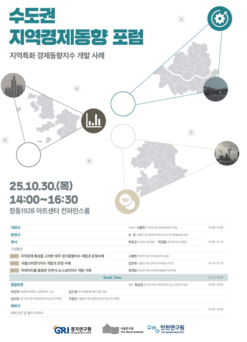 이번 포럼은 경기연구원, 인천연구원과 공동으로 주최하며, 수도권 지역의 경제동향을 종합적으로 파악·진단하기 위한 광역적 논의의 장을 마련하고자 한다.
