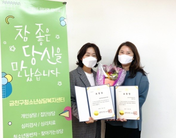 이날 금천센터는 서울시 25개 청소년 상담복지센터 중 청소년 안전망 운영 우수 기관으로 선정됨과 동시에 센터 직원도 청소년 사업 유공자로 서울특별시장 표창을 받아 2관왕을 달성했다.