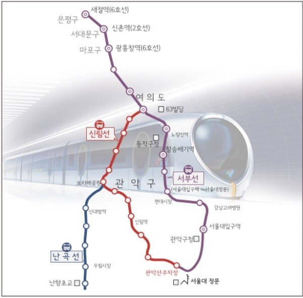 지난해 2월 서울시 발표에 따라 서부선 경전철은 서울대입구역에서 서울대 정문 앞까지 연장되며 기존 단절됐던 신림선과 서부선이 연계돼 추진 중이다. 총연장 17.49㎞로 은평구 새절역에서 여의도를 거쳐 서울대 정문 앞까지 17개 정거장이 들어선다.