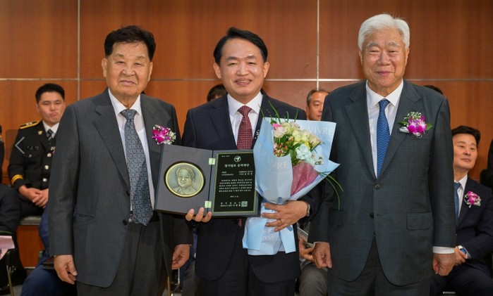 [코리아 이슈저널=홍춘표 기자] 김찬진 동구청장이 지난 24일 경기 아트센터에서 열린 ‘제32회 경기일보 공직대상’ 시상식에서 자치경영대상 부문을 수상했다.