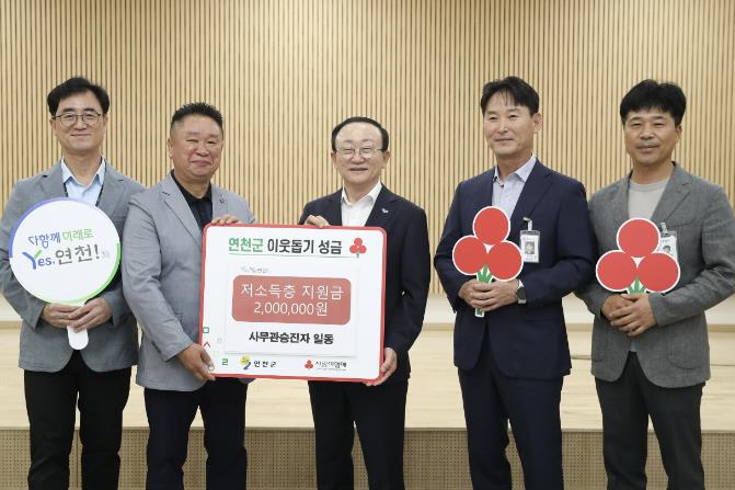 임용장 수여식 후, 승진자들은 연천군청 팀장 모임인 ‘수레회’에서 받은 축하금 중 일부를 모아 총 200만원을 이웃돕기 성금으로 기탁했다. 이 성금은 지역 내 복지 사각지대 해소와 어려운 이웃 지원을 위해 사용될 예정이다.