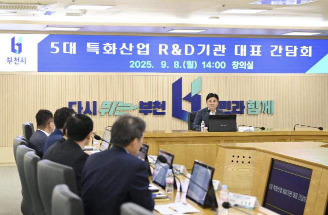 [코리아 이슈저널=홍춘표 기자] 부천시는 지난 8일 부천시청에서 금형, 조명, 로봇, 패키징, 세라믹 등 5대 특화산업 관련 연구개발(R·D)기관 대표들과 부천산업진흥원장이 참석한 가운데 ‘5대 특화산업 R·D 기관 대표 간담회’를 열었다.