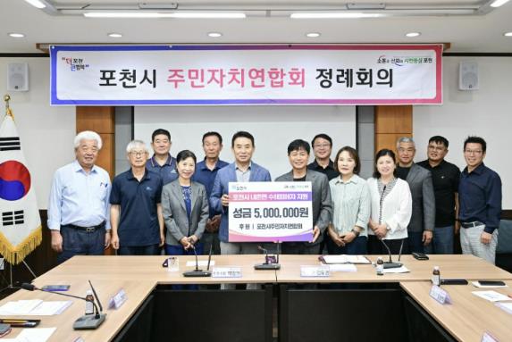 [코리아 이슈저널=홍춘표 기자] 포천시 주민자치연합회는 지난 6일, 집중호우로 피해를 입은 내촌면 수해 주민을 돕기 위해 성금 500만 원을 사회복지공동모금회에 기탁했다.