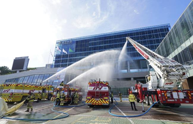 [코리아 이슈저널=홍춘표 기자] 광주시는 지난 19일 2025 을지연습과 연계해 청사 폭발 테러 상황을 대비한 실제 훈련을 실시했다.