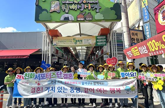 [코리아 이슈저널=김태훈 기자] 대구 달서구는 월배신시장에서 결혼친화서포터즈단과 함께 결혼장려 인식개선 캠페인을 진행했다고 30일 밝혔다.