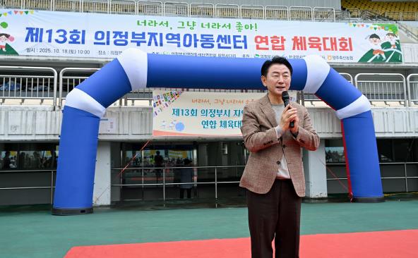 ▲ 김동근 시장이 10월 18일 ‘제13회 의정부시 지역아동센터 연합체육대회’에서 인사말을 하고 있다.
