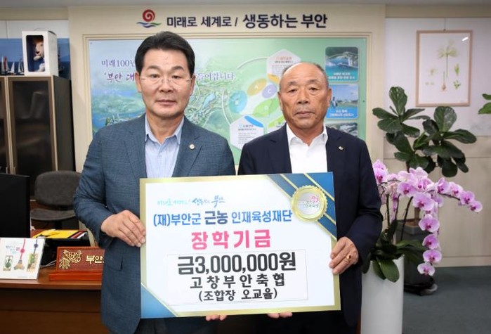 [코리아 이슈저널=김종오 기자] 고창부안축협은 지난 22일 부안군 근농인재육성재단을 방문하여 장학금 300만원을 기탁했다.