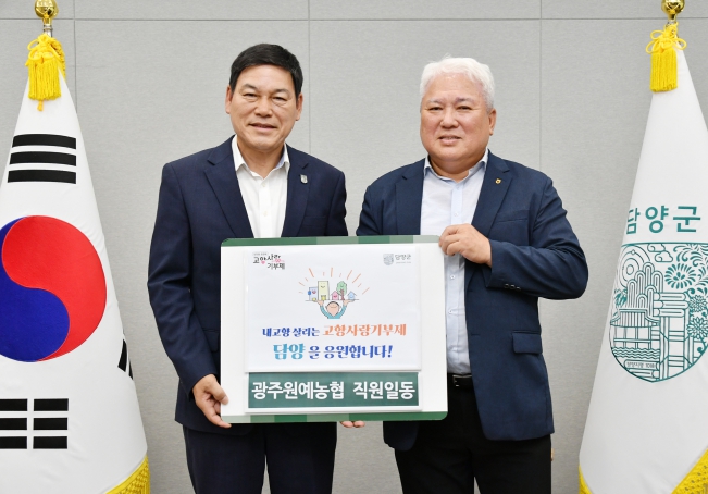 [코리아 이슈저널=김종오 기자] 담양군은 17일 광주원예농협(조합장 정일기)이 임직원들과 함께 고향사랑기부제를 통한 지역 나눔에 동참했다고 밝혔다.
