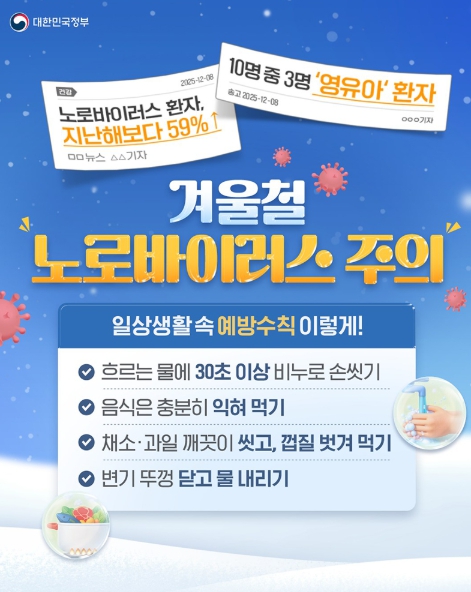 [코리아 이슈저널=최용달 기자] ■ 겨울철 노로바이러스 주의