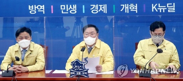 김 원내대표는 또 국민의힘에 "재난지원금 스케줄을 재보선에 맞췄다는 근거 없는 주장 등을 하고 있다"며 "국민의힘에는 정치 시간표만 있고 민생 시간표는 없는 것 같다. 국민이 사실 왜곡과 궤변을 반복하는 구태를 용납하지 않을 것"이라고 주장했다.